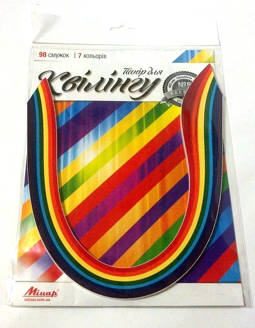 В комплект входять смужки паперу 7-ми кольорів. Довжина смуг 420 мм, ширина - 5 мм Кількість - 98 полос. Щільність паперу 160 р./ кв. м. Виріб не містить шкідливих матеріалів. Безпечно для здоров'я. Виробник ФОП "Зибнев"